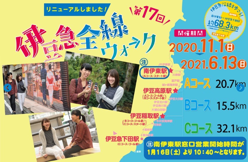 リニューアル!第17回伊豆急全線ウォーク開催!!※参加券残数 Aコース完売、Bコース6枚、Cコース完売(2021.4.13現在)